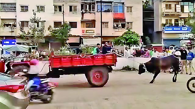 तिथे त्याला एक काळसर लाल रंगाचा बैल मृतावस्थेत दिसला. बैलाच्या गळ्याची दोरी ट्रॅक्टर ट्रॉलीला बांधलेली होती. तिथे असलेल्या कापसेने आरोपींनी बैलाला ट्रॅक्टरला बांधून ओढत नेल्याने तो जखमी होऊन दगावल्याची सांगितले. याप्रकरणी सिडको पोलिस ठाण्यात आरोपींविरुद्ध प्राण्यांचा छळ प्रतिबंधक कायद्यासह अन्य कलमाखाली गुन्हा नोंद झाला.