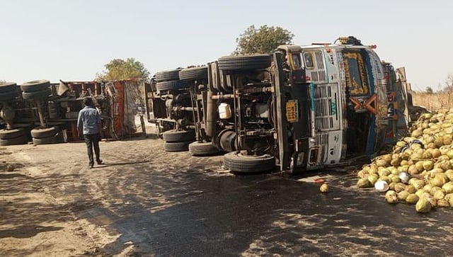 त्यामुळे दोन्ही वाहने महामार्गावर पलटी झाली. नारळ व कापसाच्या गठानी रस्त्यावर पडल्याने रस्ता बंद झाला. परिणामी महामार्गावर वाहतुकीची चांगलीच कोंडी झाली. या घटनेची माहिती अजिंठा पोलिसांना मिळतात अजिंठा पोलीस ठाण्याचे कर्मचारी घटनास्थळी दाखल झाले. रस्त्यावर पडलेल्या दोन्ही ट्रक क्रेनच्या मदतीने रस्याच्या बाजुला काढून वाहतूक सुरळीत करण्यात आली. या घटनेची नोंद अजिंठा पोलीस ठाण्यात घेण्यात आली असून, या अपघाताचा पुढील तपास सपोनी अमोल ढाकणे यांच्या मार्गदर्शनात पोलीस कर्मचारी करीत आहे. (chhatrapati sambhaji nagar)