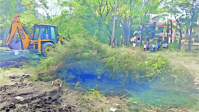 CIDCO removed the thorny bushes from Devgiri Nagar park.