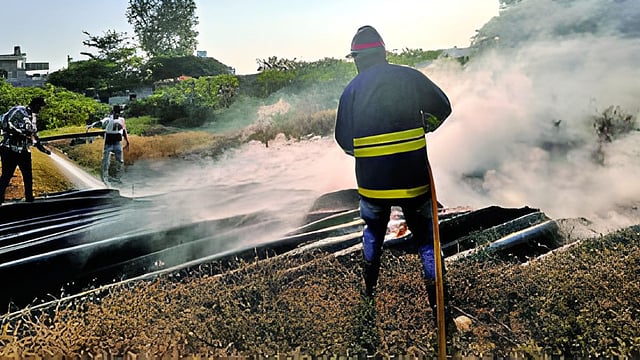 ही माहिती मिळताच ड्यूटी अधिकारी दीपराज गंगावणे यांच्या नेतृत्वाखाली अग्निशमन दलाच्या जवानांनी तातडीने घटनास्थळी धाव घेतली. जवान दिनेश मुंगसे, प्रणाल सूर्यवंशी, त्रिंबक सावंत, मनसुपराव सपकाळ व वाहनचालक जगदीश गायकवाड यांनी मिळून अवघ्या अर्ध्या तासात आग आटोक्यात आणली. सुदैवाने कोणतीही जीवितहानी झाली नाही. प्लास्टिक जळाल्याने धुराचे प्रमाण मोठे दिसल्यामुळे आग भीषण असल्याची भावना निर्माण झाली होती, असे गंगावणे यांनी सांगितले.