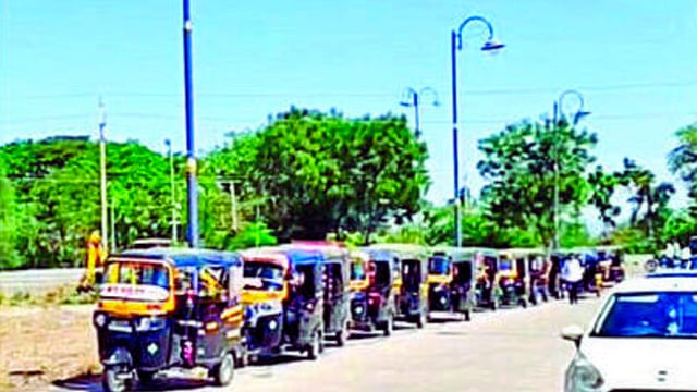 Queues of auto-rickshaws outside Guardian Minister Shirsat's residence