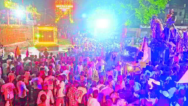मिरवणुकीदरम्यान तरुणांची वेशभूषा, डोक्यात भगव्या टोप्या सर्वांचे लक्ष वेधून घेत होत्या. तर छत्रपती शिवाजी महाराज यांच्या पुतळ्याचे गावात आगमन होताच फटाक्यांची आतषबाजी करण्यात आली. प्रभू रामचंद्र, जय भवानी, जय शिवाजीच्या जयघोषाने तरुणांनी परिसर दणाणून सोडला. यावेळी ग्रामस्थांनी पुष्पवर्षाव केला. श्री प्रभू रामचंद्र यांच्या जन्मोत्सवानिमित्त प्रसादाचेही आयोजन करण्यात आले होते.