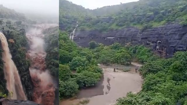 सोयगाव तालुक्यातील जगप्रसिद्ध अजिंठा लेणी परिसरात (रविवार) रात्रभर व आज (सोमवार) पहाटे झालेल्या मुसळधार पावसामुळे येथील वाघूर नदीला मोठा पूर आला आहे. यामुळे अजिंठा लेणीतील पर्यटकांचे मुख्य आकर्षण असलेला सप्तकुंड धबधबा कोसळायला सुरुवात झाली आहे.