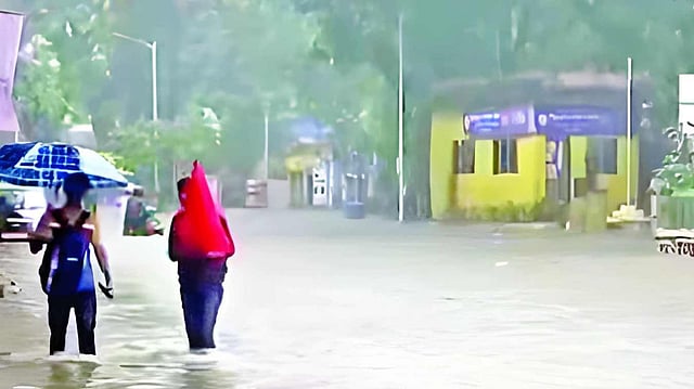 छत्रपती संभाजीनगर, पुढारी वृत्तसेवा : शहर व परिसरात विजांच्या कडकडाटात ढगांच्या गडगडाटात परतीच्या पावसाने सलग दुसऱ्या दिवशी शनिवारी (दि.२०) दुपारी दोन वाजेच्या सुमारास जोरदार हजेरी लावली. सुमारे दीड तास तुफान बरसलेल्या पावसामुळे शहरातील रस्त्यांवर सर्वत्र पाणीच पाणी झाले होते. या धुवाधार पावसामुळे अनेक भागांतील रस्त्यांना नदीचे स्वरूप प्राप्त झाले होते. तर शिवाजीनगर भुयारी मार्ग तुंबल्याने शालेय विद्यार्थ्यांसह कामावर जाणाऱ्या चाकरमान्यांची तारंबळ उडाली.