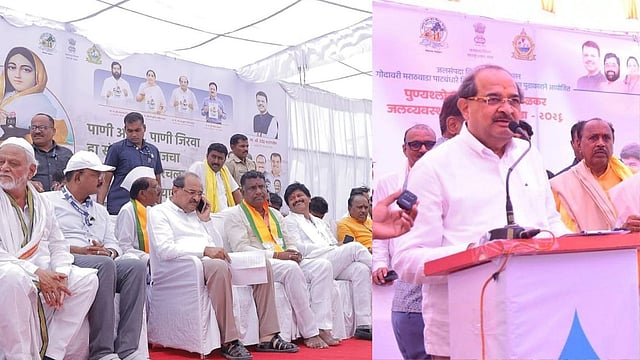 ही जलयात्रा वैजापूरात दाखल होताच मंचावर मान्यवरांची भाषणे झाली. मात्र मंत्री राधाकृष्ण विखे भाषणासाठी उभे राहिल्यावर, मागील रांगेतून उभा राहिलेल्या एका शेतकऱ्याने थेट आरोपांचा भडीमार करत नागरिकांचे लक्ष वेधले. “ठेकेदारांकडून बोगस कामे केली जात आहेत, खोटी बिले रेकॉर्ड केली जात आहेत, जुने कामे कागदावर दाखवली जात आहेत. कोट्यवधी रुपयांचा अपव्यय होतोय; पण आमच्या बांधावर पाणी अजूनही पोहोचलेलं नाही,” असा संतप्त सवाल त्या उपस्थित शेतकऱ्याने उपस्थित केला.