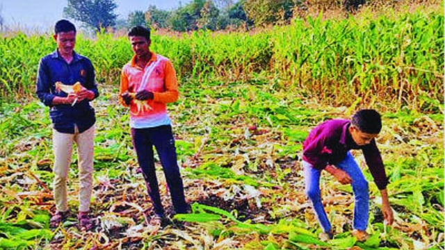 परंतु त्या आधीच रानडुकरांच्या कळपांनी ताव मारून एकाच रात्री एक एकर क्षेत्रावरील मक्याची कणसे फस्त केली. रविवारी वनरक्षक शिवाजी चौधरी यांनी घटनास्थळी येऊन नुकसानीचा पंचनामा केला.