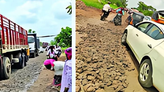 रस्त्याच्या मधोमध खडी टाकली आहे. यामुळे अपघात होत आहेत. गाडीचे टायर फुटत आहेत. या रस्त्याच्या गुत्तेदाराच्या हलगर्जीपणामुळे मोठी दुर्घटना होईल. त्यामुळे रस्त्याचे काम तत्काळ करावे, असे संजय साबळे यांनी सांगितले.