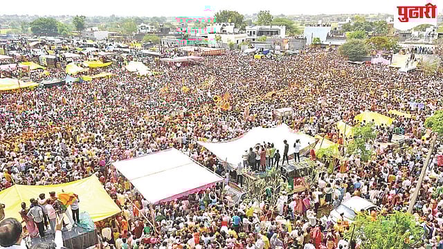 चुन्याच्या रानात सकाळी 11 वा पालखीचे आगमन होताच लाखों भाविकांनी चुनखडीचे खडे वेचून पालखीवर टाकत आई राजा उदे उदेचा एकच जय घोष केला भाविकांच्या या गजराने चुन्याच्या रानाचा परिसर दुमदुमून गेला होता.