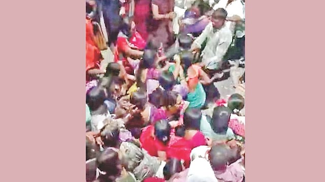 दरम्यान, रथोत्सव सुरू होताच मंदिराच्या परिसरात जमा झालेल्या दोन महिलांमध्ये फ्रिस्टाईल हाणामारीला सुरुवात झाली. एकमेकांचे केस ओढून मारहाणीपर्यंत प्रकरण गेले. यामध्ये इतर दोन ते तीन महिलांनीही मारहाणीत सहभाग घेतला तर एका तरुणाने दुसऱ्या एका तरुणालाही मारहाण करण्यास सुरुवात केली. अचानक झालेल्या या मारहाणीच्या प्रकारामुळे काही काळ गोंधळाची स्थिती निर्माण झाली होती. मात्र काही भाविकांनीच मध्यस्थी करून वाद सोडवला.