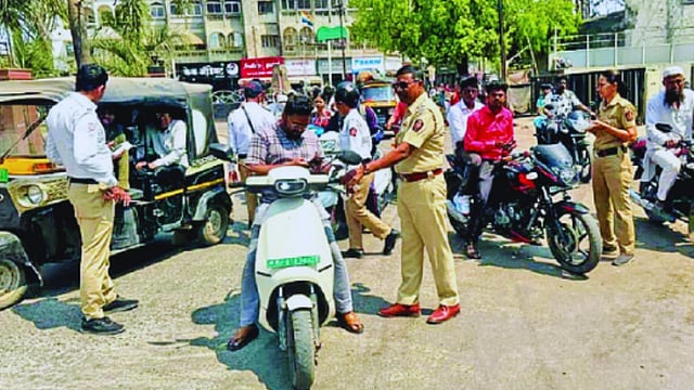 उपविभागीय पोलीस अधिकारी अनंत कुलकर्णी यांच्या नेतृत्वाखाली वाहतूक शाखेचे प्रभारी प्रताप इंगळे व त्यांच्या पथकाने शहरातील विविध चौकांमध्ये नाकाबंदी करून तपासणी केली. वाहतूक शाखेकडून सुरू असलेली ही मोहीम पुढेही कायम राहणार असल्याचे पोलिसांनी स्पष्ट केले आहे.