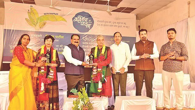 येथील जेइएस महाविद्यालयाच्या प्रांगणात “दु:खी” राज्य काव्य आणि ना. धों. महानोर राज्य साहित्य पुरस्कारांचे वितरण गुरुवारी ( ता.19) सायंकाळी “कवितेचा पाडवा” या कार्यक्रमात विश्वास पाटील यांच्या हस्ते करण्यात आले.प्रसिद्ध उर्दू शायर राय हरिश्चंद्र साहनी यांच्या स्मृतिप्रीत्यर्थ दिला जाणारा “दु:खी” राज्य काव्य पुरस्कार कवी अशोक नायगावकर (रोख 25 हजार रुपये) यांना तर ना. धों. महानोर राज्य साहित्य पुरस्कार (रोख 10 हजार रुपये),ज्येष्ठ ललित लेखिका डॉ. मीनाक्षी पाटील यांना प्रदान करण्यात आला. यावेळी अभय साहनी,विनीत साहनी, डॉ. संजीवनी तडेगावकर, पंडितराव तडेगावकर यांची प्रमुख उपस्थिती होती.