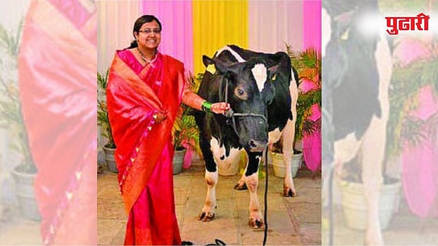 मुरूम (लातूर) : येथील श्वेता बापुराव पाटील यांच्या एचएफ गायीने राज्यभरातून आलेल्या स्पर्धकांना मागे टाकत नागपूर येथे झालेल्या ॲग्रो-व्हिजन आयोजित दूध उत्पादन स्पर्धेत प्रथम क्रमांक पटकावला. ४४ लिटर दूध देणारी ही गाय राज्यात अव्वल ठरली आहे.