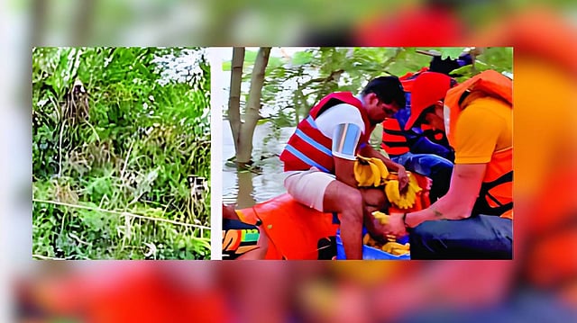 लातूर, पुढारी वृत्तसेवा: मांजरा नदीस आलेल्या पुरात नदीपात्रात असलेल्या सुबाभळीच्या झाडांवर तीन दिवसांपासून अडकलेल्या व उपासमार होत असलेल्या निलंगा तालुक्यातील चिंचोडी येथील वानरांना लातूर येथील आपत्ती निवारण कक्षाच्या शोध व बचाव पथकाने केळी व बिस्किटे देऊन भूतदयेचे अनोखे दर्शन घडवले. त्यांच्या या वन्यजीव सेवेचे सर्वत्र कौतूक होत आहे.