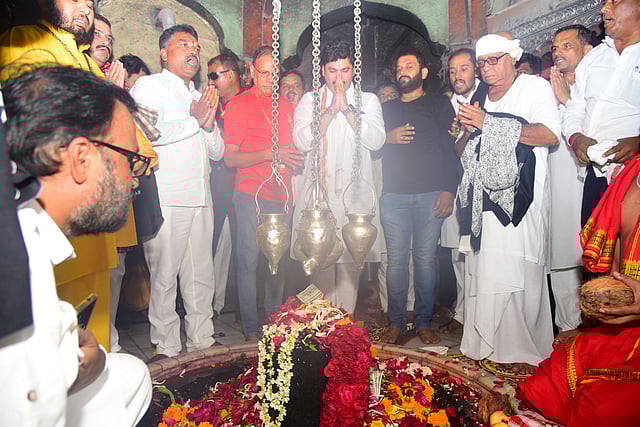 रामचरितमानस या ग्रंथाचे प्रसिद्ध कथाकार मोरारी बापू हे तब्बल ९६० भक्तगणांसह देशातील बारा ज्योतिर्लिंगांच्या यात्रेवर असून त्यासाठी दोन विशेष रेल्वे गाड्यांची व्यवस्था करण्यात आलेली आहे. दरम्यान आज तिरुपती बालाजी येथील दर्शन करून पहाटे सहाच्या सुमारास मोरारी बापू यांची ट्रेन परळी वैद्यनाथ येथे पोहोचली. धनंजय मुंडे यांनी मोरारी बापू यांना दर्शनासोबतच संपूर्ण मंदिर परिसर दाखवून त्याबद्दल माहिती दिली. यावेळी नमामी वैद्यनाथम व हर हर महादेवच्या जयघोषाने मंदिर परिसर दुमदुमून गेला होता. दरम्यान, दर्शन करून पुढील प्रवासासाठी निघाताना मोरारी बापू यांनी आपल्याला राम कथेसाठी परळीत येण्याचे निमंत्रण दिले असून, लवकरच कथेसाठी परळीत येणार असल्याचे सांगितले.