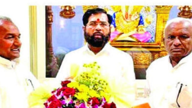 शिवसेनेचे प्रमुख नेते व राज्याचे उपमुख्यमंत्री एकनाथ शिंदे यांची शंकरअण्णा धोंडगे यांनी आपले सहकारी दत्ता पवार यांच्यासह नुकतीच भेट घेऊन त्यांच्याशी चर्चा केली. या भेटीचे छायाचित्र समाजमाध्यमांत जारी होताच, धोंडगे यांच्या शिवसेना प्रवेशाची चर्चा जिल्ह्यामध्ये सुरू झाली. मुंबईतील भेट आटोपल्यानंतर धोंडगे आपली कर्मभूमी कंधारमध्ये परतले आहेत. समाजमाध्यमांतून बाहेर आलेली माहिती त्यांनी फेटाळली नाही; पण अंतिम निर्णय झाला नसल्याचे सांगत, येत्या रविवारी (दि.८) आमची बैठक होणार असल्याची माहिती त्यांनी दिली. याच बैठकीत त्यांच्या शिवसेना पक्षप्रवेशाचा निर्णय होण्याची शक्यता आहे.