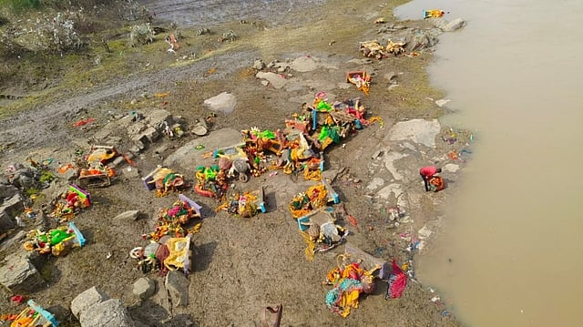 रात्री बारा वाजेपर्यंत गोदावरी नदीला पूर होता. त्यामुळे प्रशासनाच्या वतीने विशेष काळजी घेऊन परिसरातील दुर्गा मातेचे विसर्जन केले. मात्र अवघ्या पाच ते सहा तासात गोदावरी नदीचा पूर ओसरला आणि शनिवारी सकाळी अक्षरशः गोदावरी मातेच्या मूर्ती उघड्या पडल्या. यामुळे एकच खळबळ उडाली आहे. भक्ती भावाने पूजा करून दुर्गा मातेचे उत्साहाने विसर्जन झाले. परंतु गोदावरी नदीचा पूर ओसरल्याने विसर्जन केलेल्या दुर्गामाता उघड्या पडल्या आहेत.