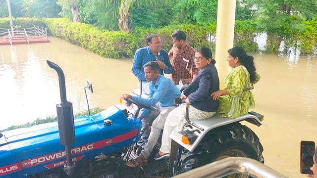 अर्धापूर : नांदेड जिल्ह्यात शुक्रवारी पहाटे झालेल्या अतिवृष्टीमुळे पूरस्थिती निर्माण झाली. अनेक शासकीय कार्यालये पाण्याने वेढली गेली, त्यामुळे लोकांना वेळेवर कामावर पोहोचता आले नाही. मात्र, अर्धापूर येथील प्रथम वर्ग न्यायदंडाधिकारी आर.बी. सोरेकर या ही अडचण बाजूला ठेवून चक्क ट्रॅक्टरवर बसून न्यायालयात पोहोचल्या.