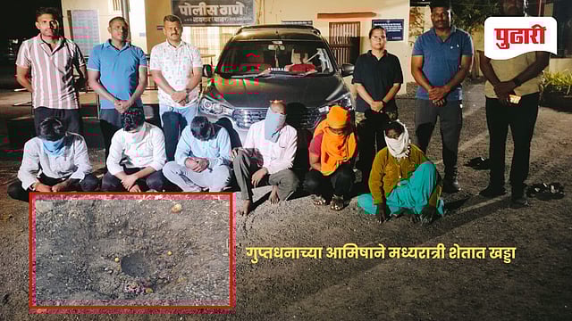 नायगाव : नायगाव तालुक्यातील गडगा येथे गुप्तधन मिळवण्याच्या आमिषाने अंधश्रद्धेचा आधार घेत मध्यरात्री शेतात खड्डा खोदणाऱ्या सहा जणांना पोलिसांनी रंगेहात पकडत अटक केली. या कारवाईमुळे परिसरात एकच खळबळ उडाली असून अंधश्रद्धेविरोधात पोलिसांनी कठोर भूमिका घेतल्याचा स्पष्ट संदेश दिला आहे.