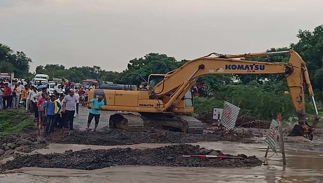 परभणी, पुढारी वृत्तसेवा : तालुक्यातील झरी येथील नाम नदीवर पुलाचे काम सुरु आहे. यामुळे तयार करण्यात आलेल्या पर्यायी पुलावर पाणी आल्यामुळे तो खचल्याने जिंतूर ते परभणी महामार्गावरील वाहतूक ठप्प झाली हाेती. जेसीबीच्या साह्याने मुरूम टाकून ती सुरळीत करण्याचा प्रयत्न बांधकाम विभागाकडून केला जात आहे. झरी परिसरात शनिवारी ढगफुटी सदृश पाऊस पडला. यामुळे पूर परिस्थिती निर्माण झाली आहे.
