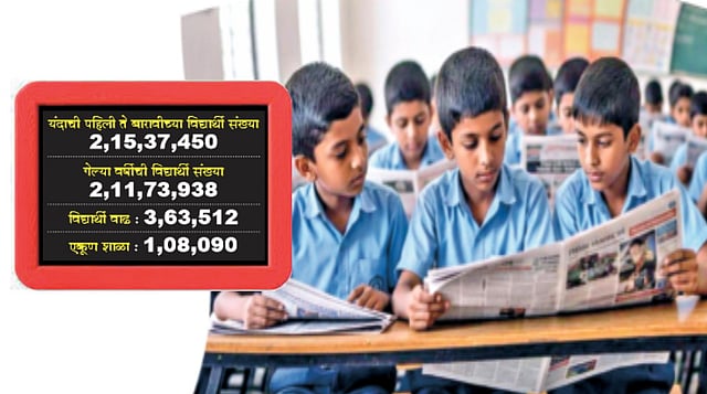 * 2024-25 या शैक्षणिक वर्षात राज्यातील एकूण विद्यार्थी संख्या 2 कोटी 11 लाख 73,938 इतकी होती.