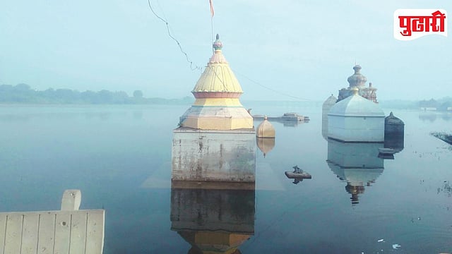 मागील काही दिवसांपूर्वी गोदावरी वाहती होती. नदीवरील वसंत बंदर यातही पूर्ण क्षमतेने पाणी अडविण्यात आले आहे. यामुळे नदीच्या होळकर आणि ब्राह्मण या दोन्ही घाटावरील अनेक मंदिरे तसेच घाट पाण्याखाली आहेत.