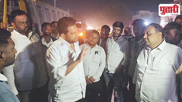 नगर-मनमाड रस्त्याची साडेसाती संपण्याची अपेक्षा सर्वांनाच आहे. राहुरी शहर हद्दीमध्ये ठेकेदाराकडून रस्त्यावर डांबर ओतण्याचे काम सुरू आहे. वाहतूक कोंडी सुरू असतानाच, काल दुसऱ्यांदा माजी खा. डॉ. सुजय विखे हे राहुरीत रस्त्यावर उतरले. सोमवारी दि. 19 जानेवारी रात्री सुमारे 10.30 वाजता डॉ. विखे पाटील नगर- मनमाड महामार्गावर उपस्थित दिसले. त्यांनी वाहतूक कोंडीची ठिकाणे पाहून परिस्थितीचा सखोल आढावा घेतला. अडलेल्या वाहनांजवळ जाऊन प्रवाशांशी थेट संवाद साधत त्यांच्या अडचणी जाणून घेतल्या. संबंधित प्रशासन व यंत्रणांना जागेवरच स्पष्ट सूचना देत हलगर्जीपणा खपवून घेतला जाणार नाही, असा ठाम इशारा दिला. यावेळी देवळाली प्रवरा येथील नगरसेवक ऋषभ लोढा, अक्षय तनपुरे, मनोज गव्हाणे, महेश गायकवाड यांच्यासह अनेक कार्यकर्ते उपस्थित होते. कार्यकर्त्यांनीही प्रत्यक्ष रस्त्यावर उतरून वाहतूक सुरळीत ठेवण्यासाठी सहकार्य केले.
