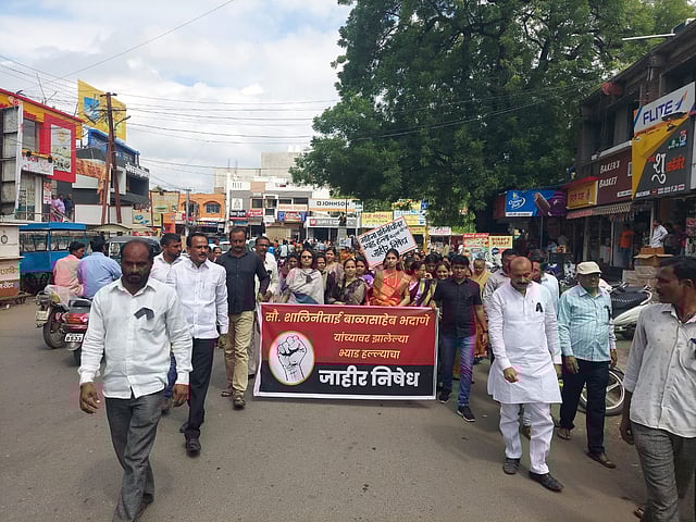 जिल्हा परिषदेच्या अध्यक्षपदाच्या निवडीत तटस्थ राहणाऱ्या महिला सदस्याच्या अंगावर शाईफेक केल्याच्या घटनेचा निषेध करण्यासाठी महिला सन्मान आणि संरक्षण समितीच्यावतीने मोर्चा काढण्यात आला. या मोर्चात भारतीय जनता पार्टी आणि शिवसेनेच्या शिंदे गटाच्या कार्यकर्त्यांनी देखील हजेरी लावून महिलांवर अशाप्रकारे हल्ला करण्याच्या घटनेचा निषेध नोंदवला आहे.