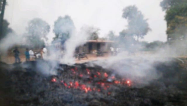 पिंपळनेर,(ता.साक्री),पुढारी वृत्तसेवा : तालुक्यातील शेणपूर येथील निखिल शरद काळे यांच्या शेतातील मक्याच्या चाऱ्याला विद्युत वाहिनीच्या तारा लोमकळल्याने स्पार्किंग झाले. यानंतर भीषण आग लागून पाचशे क्विंटल मक्याच्या चाऱ्याची गंजी आणि गोठा जळून खाक झाला. आज सायंकाळी पाच वाजण्याच्या सुमारास ही घटना घडली असल्याचे तेथील स्थानिक शेतमजुरांनी सांगितले. त्यानंतर गावातील सुमारे ३०ते ४० लोक घटनास्थळी पोहोचले. त्यानंतर रात्री उशिरापर्यंत म्हणजेच साडेसात ते साडेआठ वाजेपर्यंत गावकऱ्यांना आगीवर नियंत्रण मिळवणे शक्य झाले.