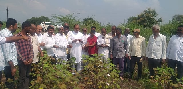 अतिवृष्टीमुळे नुकसान झालेल्या पिकांची आ.कुणाल पाटील हे धुळे तालुक्यातील वेगवेगळ्या गावात जाऊन नुकसानग्रस्त शेतपिकांची पहाणी करीत आहेत. मंगळवारी (दि.27) गोंदूर शिवारात जाऊन पाहणी दौर्यात त्यांनी विविध गावांमध्येही शेतकर्यांच्या भेटी घेत त्यांच्या व्यथा जाणून घेतल्या. तालुक्यात अतिवृष्टीमुळे शेतकर्यांचे मोठ्या प्रमाणात नुकसान झाले आहे. कापूस, मका, बाजरी, ज्वारी, कांदा, कडधान्य यासह फळबागायत व भाजीपाला पिकांचे प्रचंड नुकसान झाले आहे. मुसळधारमुळे शेतांमध्ये पाणी साचल्याने वेचणीला आलेला कापूसही पाण्यात बुडाला, सततच्या पावसामुळे कापसाची बोंडे भिजून कुजल्याने शेतकर्यांच्या कापूस उत्पन्नात घट होवून प्रचंड आर्थिक नुकसान झाले आहे. दरम्यान शेतात पाणी साचल्यामुळे खरीपाची इतर पिकेही पाण्याखाली गेली आहेत. तसेच मुसळधार व संततधार पावसाचा परिणाम होवून धुळे तालुक्यातील प्रत्येक गावातील असंख्य घरांची पडझडही झाली आहे. त्यामुळे त्या घरात राहणार्या कुटूंबाच्या संसारोपयोगी वस्तूंचेही नुकसान झाले आहे. परिणामी असंख्य कुटूंब उघड्यावर पडली आहेत. त्यामुळे आ.कुणाल पाटील यांनी शेतकर्यांशी चर्चा करतांना सांगितले कि, ज्या दिवशी अतिवृष्टी झाली त्याच्या दुसर्याच दिवशी तालुक्यातील अतिवृष्टीची माहीती घेवून मुख्यमंत्र्यांची भेट घेतली. तसेच शंभर टक्के नुकसान भरपाईची मागणी केली. त्यामुळे शेतकर्यांनी खचून जाऊ नये. त्यांच्या पाठीमागे खंबीरपणे उभा असल्याचे सांगून त्यांनी धीर दिला.
