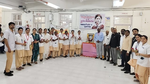 धुळे : जागतिक परिचारिका दिनाचे औचित्य साधून धुळे जिल्हा रुग्णालयाच्या बाह्यरुग्ण विभागात रक्तदान शिबिर आणि वृक्षारोपणाचा कार्यक्रम उत्साहात पार पडला.
