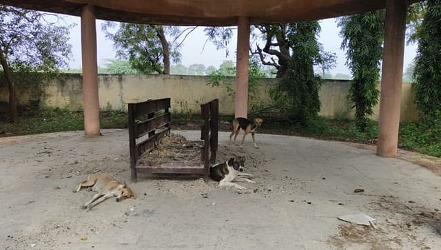 या ठिकाणी मृतदेह जाळल्यानंतर त्यांची राख जमा करण्यासाठी आलेल्या नातलगांना मोकाट श्वानांचा त्रास सहन करावा लागतो. मृतदेहाच्या राखेवर ते ठाण मांडून बसलेले असतात. अस्थी इकडे-तिकडे पसरविलेल्या असतात. यामुळे तातडीने संरक्षण भितीची दुरुस्ती करावी. कमानीला दरवाजे बसवावेत, एलईडी लाईट लावावेत, अशी मागणी ग्रामस्थांनी केली आहे.