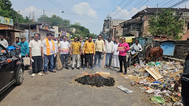 शहरात घाणीचे साम्राज्य निर्माण झाले असून, साथीचे आजार पसरण्याची शक्यता निर्माण झाली आहे. त्यामुळे शुक्रवार (दि.24) रोजी मामलेदार कचेरी चौकात शिवसेनेच्या पदाधिकाऱ्यांनी रस्त्याच्या मधोमध साचलेला कचरा जाळून महानगरपालिकेचे लक्ष वेधले. यावेळी मोठ्या संख्येने नागरिकांनी उपस्थित राहून आंदोलनाला जोरदार पाठिंबा दिला.