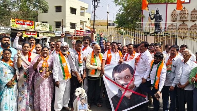 धुळे शहरात महाराणा प्रताप चौकात भारतीय जनता पार्टीचे विधानसभा क्षेत्र प्रमुख अनुप अग्रवाल ,महानगर अध्यक्ष गजेंद्र अंपळकर, माजी आमदार राजवर्धन कदमबांडे यांच्या नेतृत्वाखाली आज (दि. 30) आंदोलन करण्यात आले. यावेळी आमदार जितेंद्र आव्हाड यांच्या निषेधाच्या घोषणा देण्यात येऊन त्यांच्या प्रतिमा असणाऱ्या पोस्टरला काळे फासण्यात आले. यानंतर या पोस्टरला जोडे मारून रोष व्यक्त करण्यात आला.