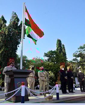 येथील पोलीस कवायत मैदानावर प्रजासत्ताक दिनाच्या वर्धापन दिनानिमित्त आयोजित मुख्य शासकीय ध्वजारोहण समारंभ पार पडल्यानंतर राष्ट्रगीत झाले. यानंतर पालकमंत्री ना. पाटील यांनी उपस्थित स्वातंत्र्यसैनिक व मान्यवरांना त्यांच्या जागेवर जाऊन प्रजासत्ताक दिनाच्या शुभेच्छा दिल्या. ध्वजारोहण समारंभानंतर राज्याचे पाणी पुरवठा व स्वच्छता मंत्री तथा जिल्ह्याचे पालकमंत्री गुलाबराव पाटील यांना पोलीस दलामार्फत मानवंदना देण्यात आली. प्रजासत्ताक दिनाच्या 72 व्या मुख्य ध्वजारोहण सोहळ्यास जिल्हाधिकारी अभिजीत राऊत, महानगरपालिकेचे आयुक्त सतीश कुलकर्णी, जिल्हा परिषदेचे मुख्य कार्यकारी अधिकारी, डॉ. पंकज आशिया, अपर जिल्हाधिकारी प्रविण महाजन, अपर पोलीस अधिक्षक चंद्रकांत गवळी, निवासी उपजिल्हाधिकारी राहूल पाटील, जिल्हा नियोजन अधिकार प्रतापराव पाटील, जळगाव शहर सार्वजनिक बांधकाम विभागाचे अधिक्षक अभियंता सौ. गिरासे, उपजिल्हाधिकारी रविंद्र भारदे, शुभांगी भारदे, शासकीय आरोग्य महाविद्यालयाचे अधिष्ठाता डॉ. रामानंद यांच्यासह विविध विभागांचे वरिष्ठ अधिकारी, विविध क्षेत्रातील मान्यवर, स्वातंत्र्य सैनिक, विद्यार्थी, नागरीक मोठया संख्येने उपस्थित होते. या सोहळ्याचे सूत्रसंचालन सरिता खाचणे आणि अपूर्वा वाणी यांनी केले.