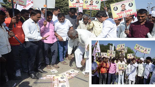 जळगावातील छत्रपती शिवाजी महाराज पुतळ्याजवळ राष्ट्रवादीचे ज्येष्ठ नेते एकनाथ खडसे यांच्या विरोधात निषेध आंदोलन करण्यात आले. जिल्ह्यातील बंजारा समाज बांधवांनी यावेळी खडसेंच्या प्रतिमेला जोडे मोरो आंदोलन करीत आमदारकीचा राजीनामा घेण्यात यावा, अशी मागणी आंदोलकांनी यावेळी केली. तसेच खडसे यांच्या विरोधात जोरदारपणे घोषणाबाजी करण्यात आली. यानंतर बंजारा समाजबांधवांतर्फे शिवतीर्थ मैदान येथून जिल्हाधिकारी कार्यालयापर्यंत आक्रमक मोर्चा नेण्यात आला.