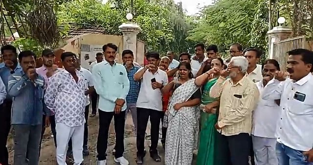 जळगाव : किरणकुमार बकाले यांच्या अटकेसाठी पोलिस अधीक्षक कार्यालयासमोर बोंबाबोंब आंदोलन करताना आक्रमक झालेला मराठा समाज.