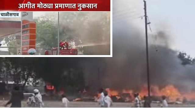 जळगाव : पुढारी ऑनलाइन डेस्क | चाळीसगाव शहरामधील मिरची बाजाराला भीषण आग लागल्याची घटना शुक्रवार (दि.11) रोजी दुपारी लागली. या भीषण आगीमुळे परिसरात मोठ्या प्रमाणावर धुराचे लोट पसरले आहेत. आग लागलेल्या घटनेच्या शेजारीच पेट्रोल पंप असल्याने परिसरातील नागरिकांमध्ये भीतीचे वातावरण निर्माण झाले.