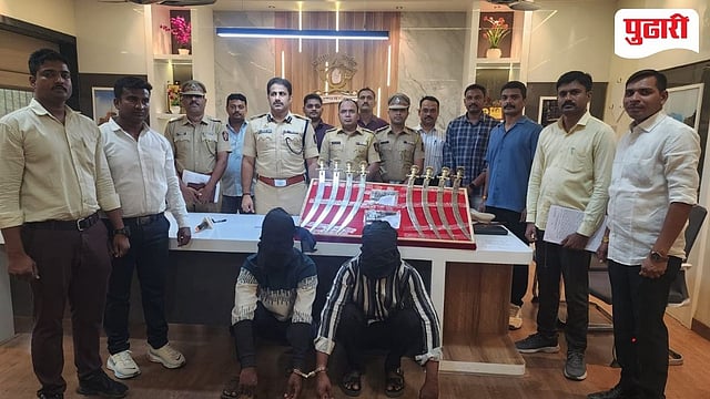 जळगाव : जळगाव शहरात पुन्हा एकदा गावठी कट्टे आणि तलवारींचे 'फॅड' उफाळून आले असतानाच, जिल्हापेठ पोलिसांनी एका अट्टल गुन्हेगारासह त्याच्या साथीदाराच्या मुसक्या आवळल्या आहेत. रामानंदनगरमधील खुनाच्या गुन्ह्यात हवा असलेला 'मोस्ट वॉन्टेड' आरोपी धनंजय उर्फ धिरज कोळी याला पोलिसांनी आर. आर. शाळेजवळील गल्लीत भरदिवसा झडप घालून पकडले. त्याच्याकडून २ चांदीच्या रंगाचे गावठी पिस्तूल आणि तब्बल ८ धारदार तलवारी असा शस्त्र साठा जप्त करण्यात आला आहे.