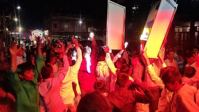 जळगाव : संत रोहिदास महाराज यांच्या जयंतीनिमित्त बुधवारी संध्याकाळी शहरात भव्य मिरवणूक काढण्यात आली. मिरवणुकीत महिला, तरुण व शालेय विद्यार्थ्यांची उपस्थिती लक्षवेधी होती. ढोलताशांच्या गजरात भाविकांनी जल्लोष करीत आपला उत्साह दाखविला.