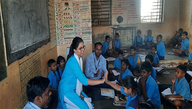 प्रश्नउत्तराने संवाद … मनासारखी अपेक्षित प्रश्नांची उत्तरे मिळाल्यावर पूजा या विद्यार्थीनीला टाळी देतात.