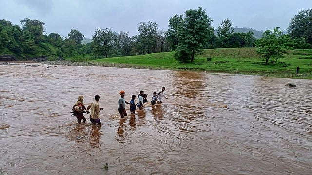 अक्कलकुवा तालुक्यातील वेहगी, बारीपाडा गावाचा रस्ता नदीतुन जातो आहे.