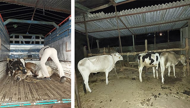 तालुक्यातील उमराळे खुर्द येथे संशयित आरोपी सुभाष शार्दुल यांच्या पत्र्याच्या शेडमध्ये गोवंश जातीचे १२ जनावरे डांबून ठेवण्यात आली होती. तसेच तीन जनावरे महिंद्रा पिकप या वाहनात अवैधरित्या वाहतूक करणार असल्याचीही गोपनीय माहिती दिंडोरी पोलिसांना मिळाली. दिंडोरी पोलिसांनी त्वरीत घटनास्थळी छापा टाकत बारा जनावरे व जनावरांची वाहतूक करण्यासाठी वापरण्यात आलेले चारचाकी वाहन जप्त केले. याप्रकरणी संशयितांविरुद्ध गुन्हा दाखल करीत जनावरांची सोडवणूक करण्यात आली आहे. पोलीस निरीक्षक प्रमोद वाघ यांचे मार्गदर्शनाखाली सहाय्यक पोलीस निरीक्षक चेतन लोखंडे, पोलीस हवालदार तुळशीराम जाधव, पोलीस नाईक प्रसाद सहाने, पोलीस नाईक सुदाम धुमाळ, पोलीस नाईक संदीप कडाळे, पोलीस शिपाई मधुकर बेंडकुळी, पोलीस शिपाई अविनाश आहेर, पोलीस चालक निवृत्ती फड यांचे पथकाने ही कारवाई केली. पुढील तपास दिंडोरी पोलीस ठाण्याचे सहाय्यक पोलीस निरीक्षक चेतन लोखंडे हे करीत आहेत.