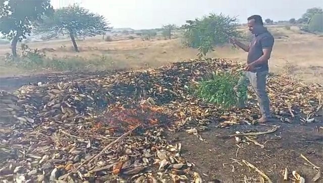माजी सैनिक असलेले शेतकरी संदीप केशव धनवटे यांनी आपल्या पाच एकर शेतीतील मका पिका काढून तीच्या बिट्या साठवून ठेवल्या होत्या. मात्र दुपाच्या सुमारास बिट्यांच्या गंजीला अचानक आग लागली. यावेळी परिसरातील शेतकरी व ग्रामस्थांनी येवला अग्निशमन दलाला पाचारण केले. तसेच एकत्र येत मिळेल त्याने आग विझवण्याचा प्रयत्न केला. मात्र, याच फारसा उपयोग झाला नाही. यात संपूर्ण बिट्या खाक झाल्याने शेतकऱ्याचे मोठे नुकसान झाले आहे. दरम्यान, पिडीत शेतकऱ्याला नुकसान भरपाई मिळावी अशी मागणी होत असून होत आहे. आग विझविण्यासाठी सरपंच संदीप गायकवाड, हिरालाल सानप, गोरख माळी, धोंडीराम गायकवाड, विलास गाडे, योगेश धनवटे, रमेश शिंदे, बाबुराव धनवटे, गोकुळ गाडे, दिलीप गिडघे आदींनी प्रयत्न केले.