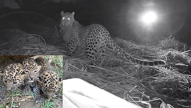 पाथर्डी शिवारातील वाडीचे रान परिसरात डेमसे मळ्यात ऊस तोडणी सुरू असताना आढळलेले बिबट्याचे तीन बछडे रविवारी तब्बल आठ तासांच्या प्रतीक्षेनंतर मादी सुरक्षित ठिकाणी घेऊन गेली. बछड्यांची व त्यांच्या आईची गाठ घालून देण्यात वन विभागाला यश आले आहे. ही घटना वनविभागाने लावलेल्या ट्रॅप कॅमेरात कैद झाली.