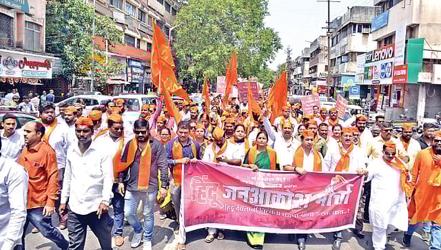 गेल्या महिन्यात वडाळा गावातील एका युवकाने सोशल माध्यमातून हिंदू देवतांबद्दल अक्षेपार्ह पोस्ट व्हायरल केली. या घटनेनंतर या युवकावर गुन्हा दाखल करण्यापलीकडे कोणतीच कारवाई झाली नसल्याच्या निषेधार्थ शहरातून आक्रोश मोर्चा काढण्यात आला. भाजप आमदार नितेश राणे यांच्या नेतृत्वात हा मोर्चा काढण्यात आला. यावेळी जिल्हाधिकार्यांना दिलेल्या निवेदनात दोन धर्मांत शत्रुत्व निर्माण करण्याचा हा प्रयत्न आहे. त्याबाबत माहिती असूनदेखील इंदिरानगर पोलिस ठाण्यात गुन्हा दाखल करण्यापलीकडे कोणतीच कारवाई झाली नसल्याबद्दल उपस्थितांनी रोष व्यक्त केला. तसेच गृहमंत्र्यांच्या निदर्शनास ही बाब आणून देताना संशयिताला अटक करून त्याच्यावर योग्य ती कारवाई करावी, अशी मागणी निवेदनात करण्यात आली. बी. डी. भालेकर मैदान, शालिमार, प. सा. नाट्यगृह, एमजी रोडमार्गे मोर्चा जिल्हाधिकारी कार्यालयापर्यंत काढण्यात आला. मोर्चात आमदार प्रा. देवयानी फरांदे व सीमा हिरे, भाजप शहराध्यक्ष गिरीश पालवे, माजी नगरसेवक दिनकर पाटील, हेमंत शेट्टी, मुकेश शहाणे, पक्षाचे नेते लक्ष्मण सावजी, रोहिणी नायडू, अनिकेतशास्त्री देशपांडे, समाधान आहेर, आकाश बेग, सागर बेग, सचिन गुरकुले, मनोज राजवाडे, गजू घोडके यांच्यासह विविध हिंदुत्ववादी संघटनांचे पदाधिकारी सहभागी झाले. मोर्चामुळे काही काळ वाहतूक व्यवस्था विस्कळीत झाल्याने चालकांना नाहक त्रास सहन करावा लागला.