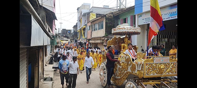 प्रारंभी बुध्दमूर्तीची सजवलेल्या रथातून तसेच भन्ते आर्यनाग थेरो, भन्ते सुगत थेरो, भन्ते धम्मशरण थेरो, भन्ते धम्मरक्षित, भन्ते धम्मरत्न यांच्यासह वणी गावातून शोभायात्रा काढण्यात आली. ढोल- ताशा, पावरी नृत्य पथक, बॅण्ड वाद्याच्या गजरात निघालेल्या शोभायात्रेत समाजबांधव पांढरे वस्त्र परिधान करून हातात पंचशील ध्वज घेऊन सहभागी झाले होते. यावेळी चौकाचौकात शोभायात्रेचे स्वागत करण्यात आले. मस्जिद चौकात वणी मुस्लीम पंच कमिटीच्या वतीने बंटी सय्यद, फईम काजी व सहकाऱ्यांनी भिक्खू संघाचे पुष्पहार घालून स्वागत केले. शिंपी गल्लीतील शिंपी बांधवांकडून सत्कार करण्यात आला. संताजी चौकात महेंद्र पारख, वणी पोलिस ठाण्याचे सपोनि. स्वप्निल राजपूत, विजय बर्डे, प्रवीण दोशी यांनी पुष्पहार घालून स्वागत केले. प्रमुख मार्गावरून शोभायात्रा विहारात आणण्यात आली. येथे विहाराचे नामकरण श्रावस्ती करून बुध्दमूर्तीची स्थापना करण्यात आली. याप्रसंगी भिक्खू संघाचे प्रवचन झाले. कार्यक्रमाचे आयोजन बुध्दमूर्ती स्थापना कमिटी, महिला बचतगट यांनी केले. शोभायात्रेत पोलिसांनी चोख बंदोबस्त ठेवला होता.