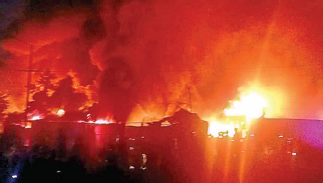 शहरातील खडकी रोड द्याने शिवार येथे प्लास्टिकच्या दोन कारखान्यांना आग लागली. यात कारखान्यातील प्लास्टिक माल, यंत्रसामुग्री जळून सुमारे 25 लाख रुपयांचे नुकसान झाले. घटनेची माहिती मिळताच अग्निशमन दलाचे 7 बंब घटनास्थळी दाखल झाले होते. जिल्ह्याचे पालकमंत्री दादा भुसे यांनी घटनास्थळी भेट देत परिस्थितीचा आढावा घेतला. अग्निशमन दल जवानांच्या शर्थीच्या प्रयत्नांनंतर आग आटोक्यात आली. सुदैवाने यात जीवितहानी झाली नाही.