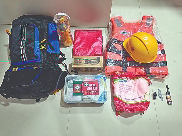 एनडीएमएने उपलब्ध करून दिलेल्या किटमध्ये विविध 15 वस्तूंचा समावेश आहे. त्यामध्ये लाइफ जॅकेट, सोलर बॅटरी, सेफ्टी ग्लोव्हज, पॉकेट चाकू, फस्टेड किट बॉक्स, गॅस लायटर, पाण्याची बाटली, शिटी, बॅग, मच्छरदाणी, हेल्मेट, टी-शर्ट, रेनकोट, गमबूट व गॉगल आदी साहित्यांचा समावेश आहे.