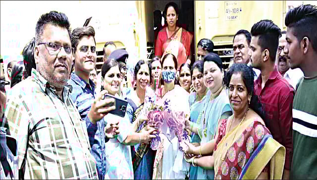 लासलगाव रेल्वेस्थानकात सकाळी गोदावरी एक्स्प्रेसचे आगमन होताच केंद्रीय आरोग्य राज्यमंत्री डॉ. भारती पवार यांचा लासलगाव बाजार समितीच्या सभापती सुवर्णा जगताप, माजी जिल्हा परिषद सदस्य डी. के. जगताप यांनी सत्कार केला. तसेच रेल्वेचे स्वागत केले. गेल्या दोन वर्षांपूर्वी कोरोनाच्या प्रादुर्भावामुळे गोदावरी एक्स्प्रेस बंद करण्यात आली होती. ती पूर्ववत सुरू करण्याची मागणी प्रवाशांकडून होत होती. तर गोदावरी तोट्यात चालत असल्याचे कारण देत सुरू करण्याबाबात रेल्वे प्रशासनाकडून नकारघंटा मिळत होती. याबाबत प्रवासी संघटनेने उच्च न्यायालयात याचिकादेखील दाखल केली आहे. या वादात प्रवाशांसह चाकरमान्यांचे हाल होत असल्याची दखल घेत ना. डॉ. भारती पवार यांनी रेल्वे प्रशासनाकडे पाठपुरावा केल्याने तीन महिन्यांच्या प्रायोगिक तत्त्वावर गोदावरी एक्स्प्रेस मनमाड ते छत्रपती शिवाजी महाराज टर्मिनसपर्यंत सुरू केल्याने प्रवाशांनी समाधान व्यक्त केले आहे. यावेळी पं. स. सदस्य संजय शेवाळे, प्रकाश दायमा, रेल्वे सल्लागार समिती सदस्य राजेंद्र चाफेकर, रेल्वे स्टेशनचे दिव्य पांडे, रेल्वे पोलिस आधिकारी गवई, दत्तुलाल शर्मा, स्मिता कुलकर्णी, रंजना शिंदे, ज्योती शिंदे, शैलजा भावसार, नितीन शर्मा, कैलास केदारे, रूपाली केदारे, बापू लचके यांच्यासह प्रवासी संघटनेचे सदस्य उपस्थित होते.