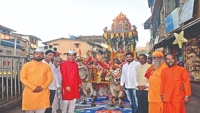 विंचुरकर यांचे पुरोहित अग्निहोत्री यांनी आरती केली. दरम्यान, रथोत्सवासाठी यावर्षी प्रथमच खा. हेमंत गोडसे, बाळासाहेबांची शिवसेना नेते संजय माशलीकर, शहरप्रमुख सुरेश गांगपुत्र उपस्थित राहिले. विश्वस्त तृप्ती धारणे, भूषण अडसरे, अॅड. पंकज भुतडा, दिलीप तुंगार, प्रशांत गायधनी, संतोष कदम, डॉ. सत्यप्रिय शुक्ल, मुख्याधिकारी संजय जाधव आदी उपस्थित होते. रथाच्या पुढे चांदीचा मुखवटा असलेली पालखी होती. सोमवारची पालखी आणि रथोत्सवाची पालखी एकाच वेळस काढण्यात आली. पालखीसोबत अनिल तुंगार, राज तुंगार, योगेश तुंगार, मनोज तुंगार हे पुजारी उपस्थित होते.
